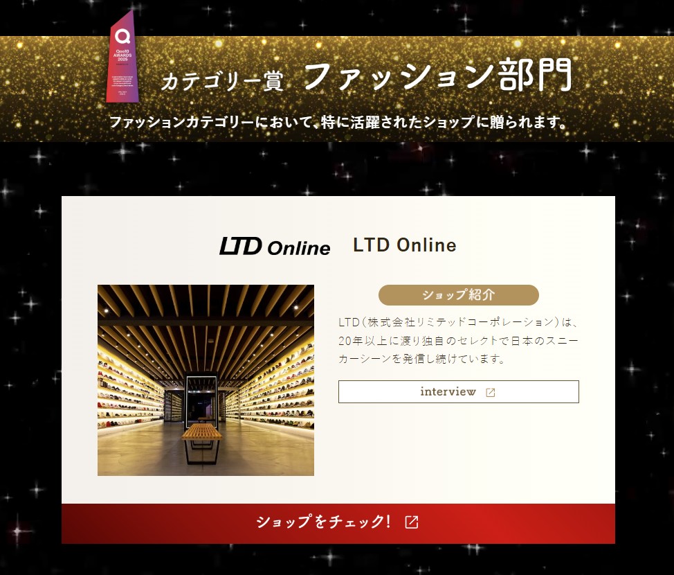 当社が運営する「LTD Online Qoo10 店」が「Qoo10 AWARDS 2025」において、カテゴリー賞を受賞いたしました。
